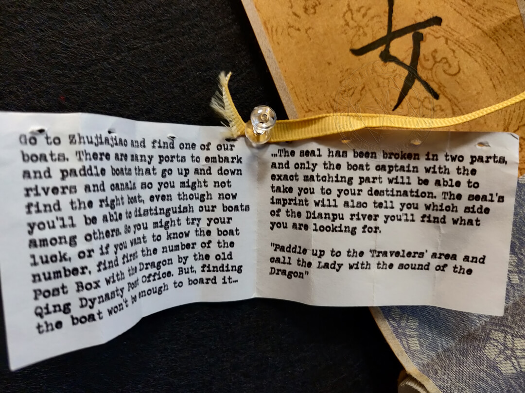 After I came back from Qushui Park, I hanged the scroll on my board and you were right, the ribbon was stuck inside the scroll. So, I pulled it…