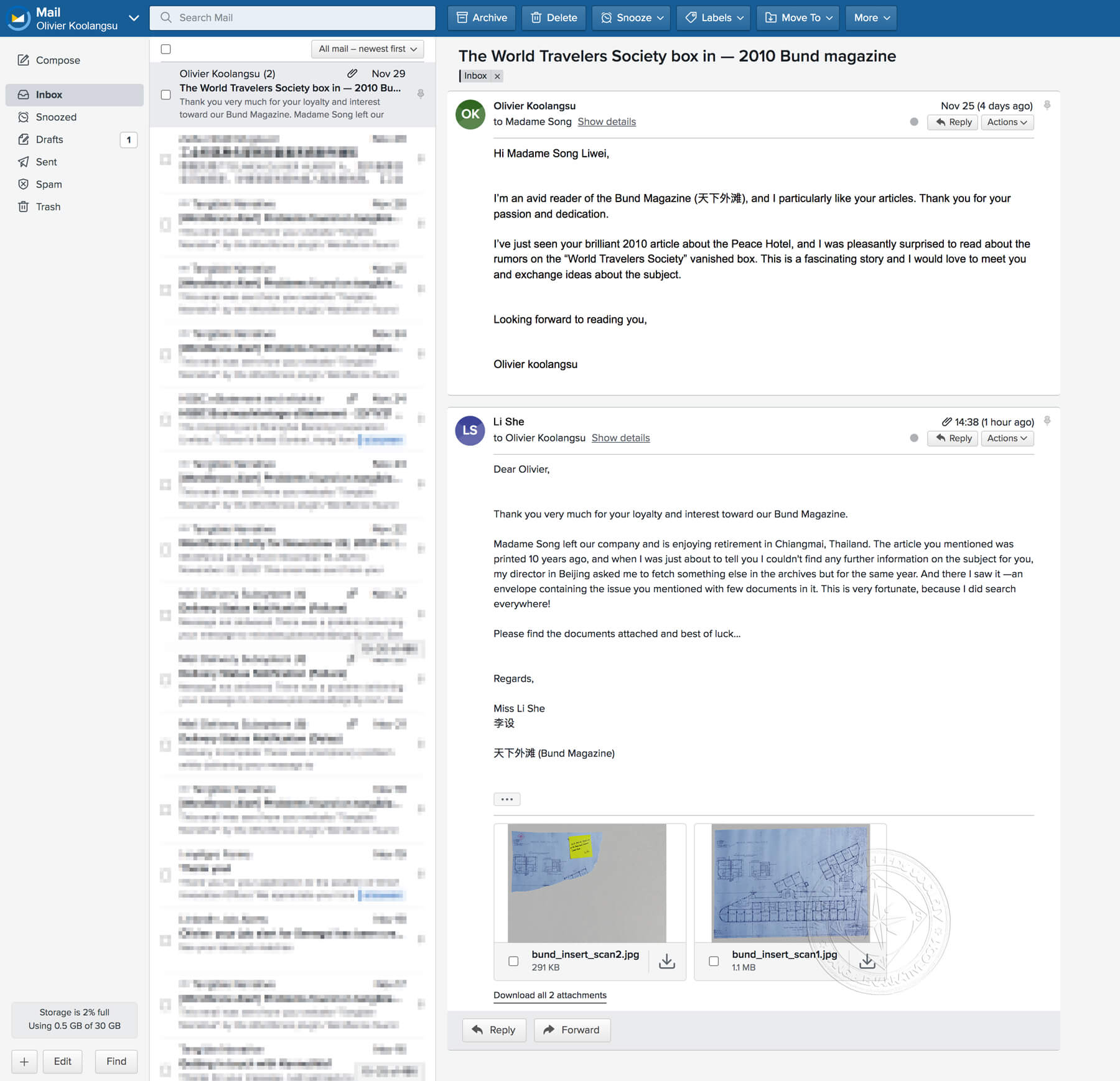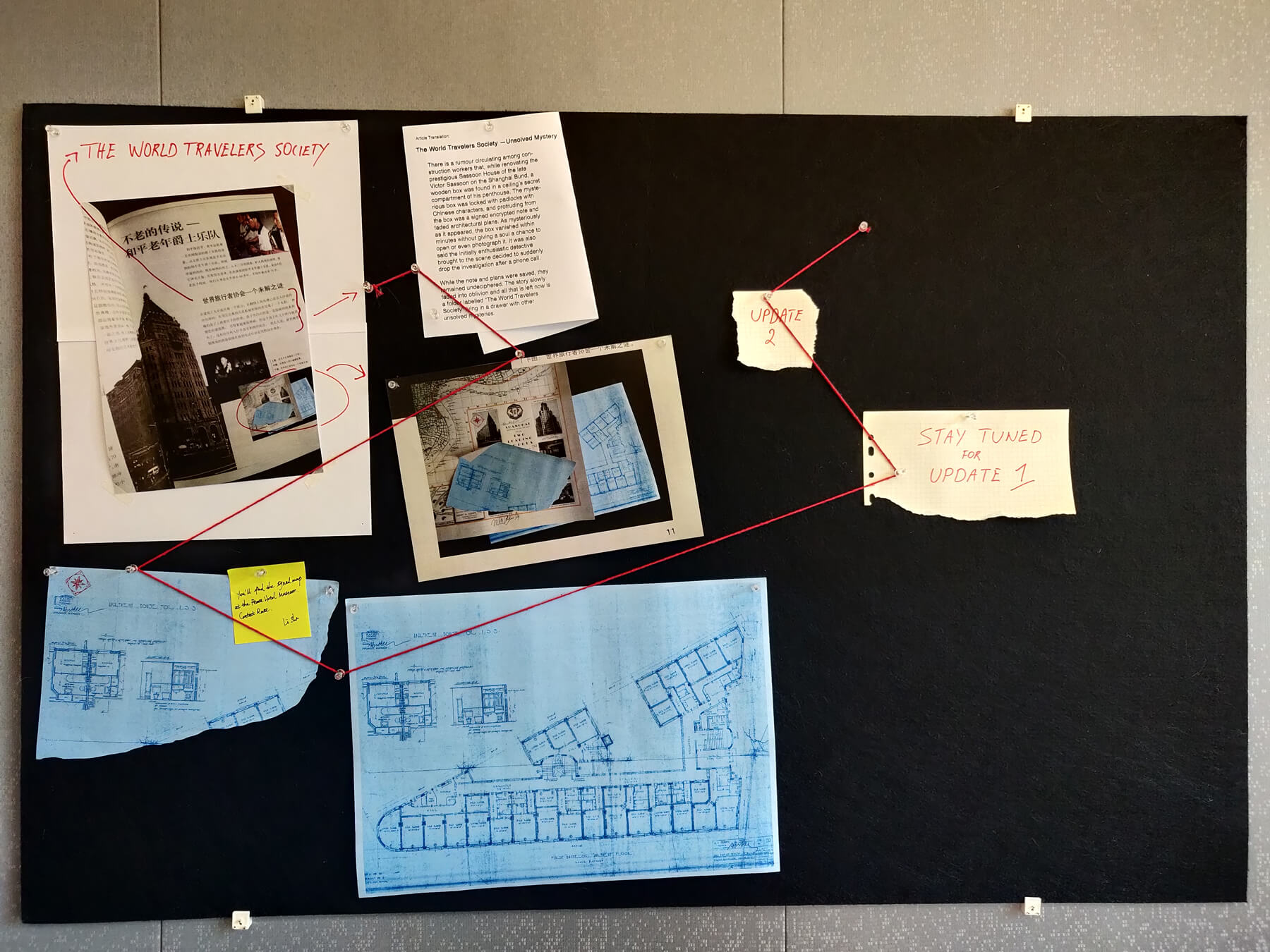 Miss Li She was kind enough to send by courier the two plans together with a sticky note saying the original note (the signed map) found with the box was actually kept at the Peace Hotel museum. I will call the Peace Hotel and see if I can get hold of the original note or its copy.