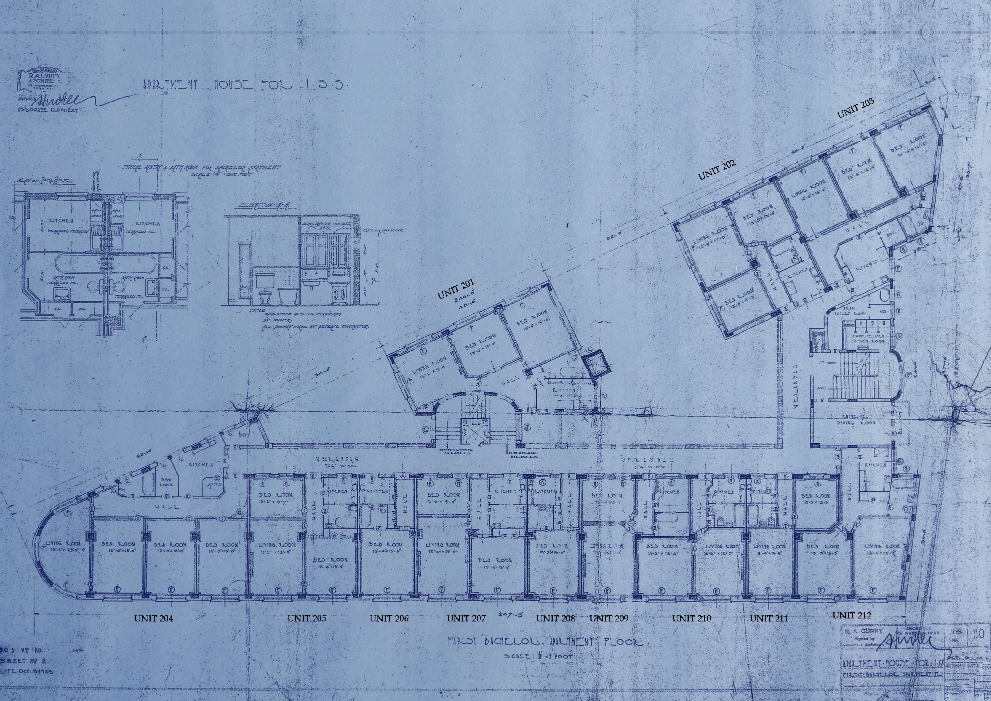 Her reply included two architectural plans, a complete floor plan and the other one looks like a copy of the same plan, but just a part that was torn off. Did they hide the box at that location? From what I can see, the detailed drawing on the top (the torn-off paper) represents a specific apartment of the overall floor plan.